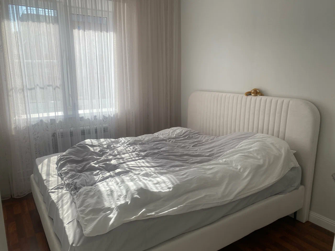 Неожиданно наткнулась на этот отдел в мебельном центре. Консультант Мария всё рассказала, объяснила насчет кровати. Не могла определиться по цвету, но дали с собой образцы материалов. В этот же день вечером заказала и Рада. Кровать привезли в срок, за 15 мин всю собрали. Объяснили как ухаживать за материалом. Моей радости нет предела. Кровать выглядит дорого. Спинка современной формы. Ткань Крутая